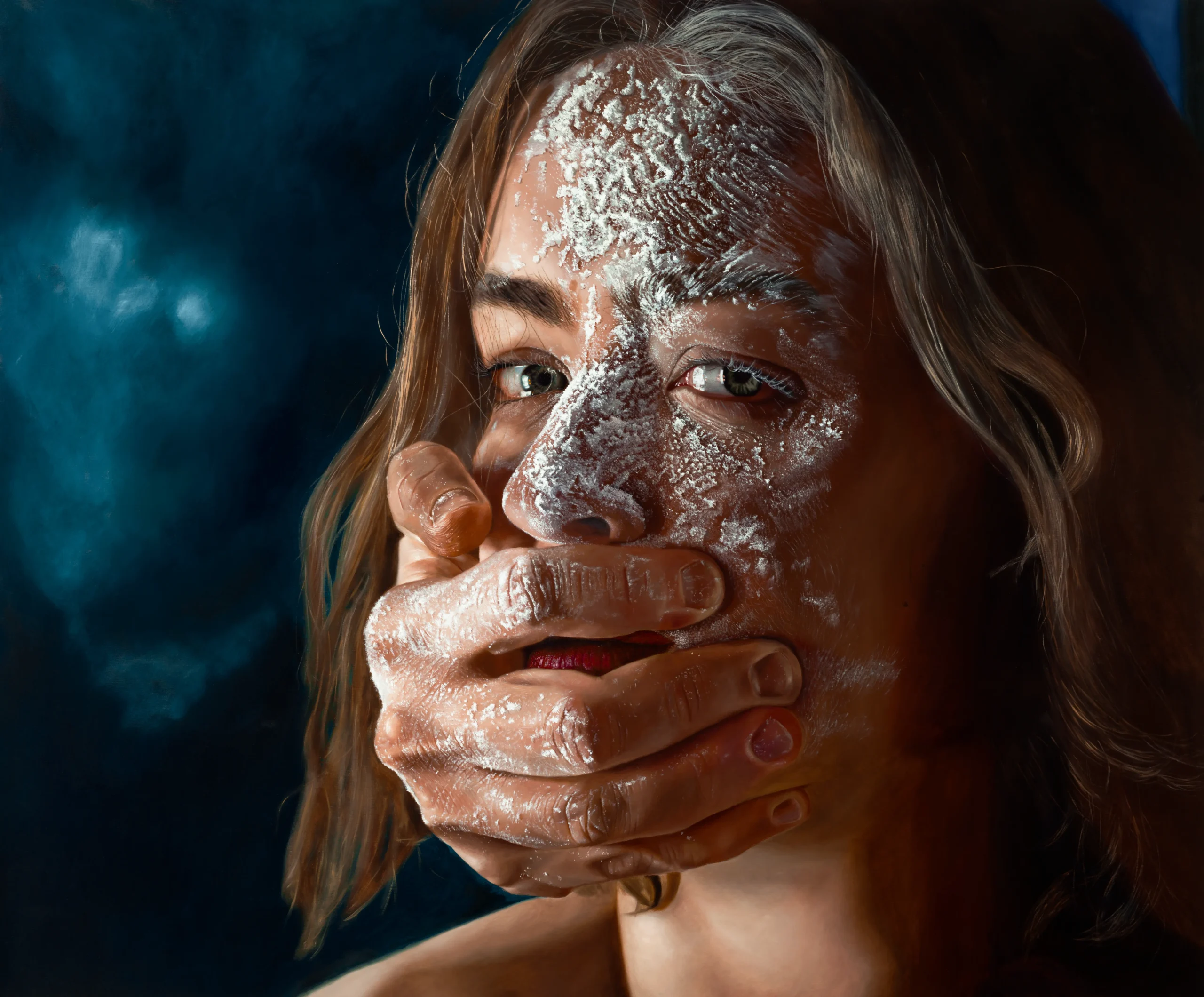 Grounded in Vermillion’s clinical work as a physical therapist and alternative medicine practitioner, Dust considers how a heightened awareness of human appearances and behaviour can foster multiple perspectives on physical and mental pain. The work seeks to navigate a delicate balance between atmospheric melancholy, personal expression, and the dynamic possibilities of paint.